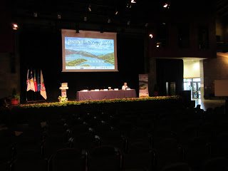 Dari puluhan simposia yang dihadirkan komite penyelenggara, saya hanya sempat ikut beberapa: satu atau dua dari setiap dua sesi per hari, beberapa sesi tidak saya ikuti penuh karena hanya mengejar beberapa presentasi saja yang judulnya tampak menarik dari buku susunan acara. Dari beberapa simposia dengan tema konservasi yang tentunya menarik bagi Tambora Muda sekalian, saya hanya sempat mengikuti yang keenam tentang Protected Areas in Islands. Menurut saya, sebagai negara kepulauan, Indonesia menghadapi tantangan besar dalam konservasi karena dinamika spesies dalam ekosistem pulau berbeda dengan dinamika spesies dalam ekosistem benua. Apalagi, sebagai negara yang terletak di antara dua benua dan dua samudera, Indonesia telah lama menjadi tempat transit dalam perdagangan internasional dan rentan kedatangan berbagai macam spesies invasif yang dapat mengganggu dinamika spesies asli pulau.
