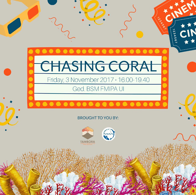 Halo semua datang dan ramaikan Nonton Bareng & Diskusi Film “Chasing Coral”, dokumenter Netflix yang menceritakan perjalanan tim divers menelusuri sebenernya apa sih yang telah dan sedang terjadi pada terumbu karang? nobar dilaksanakan pada: