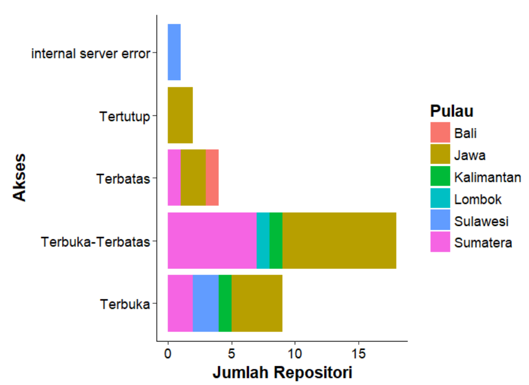 Kategori akses 36 repositori universitas di Indonesia  (dikumpulkan selama Januari 2018 oleh Tambora Muda Indonesia)